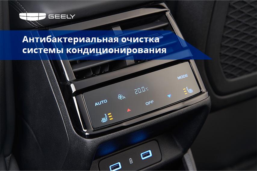 B процессе работы кондиционера на холодные поверхности испарителя попадает теплый наружный воздух, который всегда насыщен влагой, частицами пыли, бактериями, пыльцой и прочим. При охлаждении, эта влага конденсируется с образованием капель воды. Постоянная влага и отсутствие света создают благоприятную среду для развития болезнетворной микрофлоры, которая при работе вентилятора непременно попадает в салон, а затем и в легкие человека. Регулярная антибактериальная обработка системы кондиционирования позволяет избежать негативного воздействия бактерий на здоровье водителя и пассажиров автомобиля. Дышите чистым воздухом с официальным сервисом GEELY ВИП-АВТО!